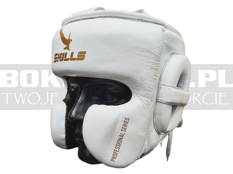 Kask bokserskie Skills Pro 2.0 Leather biały typu Mexican Style z osłonami kości policzkowych i odsłoniętą częścią podbródkową. Wykonany z wysokiej jakości skóry naturalnej premium z miękkiej w dotyku, garbowanej skóry, w klasycznej profesjonalnej kolorystyce jedno barwnej białej, ze złotymi nadrukami producenta. W kasku zastosowano pianki o różnej gęstości mające zapewnić optymalną amortyzację i wysoki komfort, od wewnętrznej strony miękki materiał pod którym kryje się miękka warstwa pianki, wywołująca przyjemność dopasowania do głowy, druga cześć rdzenia to pianka twarda mająca ściągać na siebie ciężkie uderzenia znajdująca się w warstwie zewnętrznej. W kasku zastosowano profesjonalny system mocowania na sznurek. Zapięcie sznurowane jest najbardziej efektywnym sposobem mocowania kasku na głowie zawodnika, raz dobrze zawiązane umożliwia tylko wsuwanie i zsuwanie kasku z głowy bez potrzeby każdorazowej jego wiązania. Od góry kask sznurowany zarówno pozwalający oddychać głowie podczas treningu ale również wielko punktowe ściąganie dopasowuje kask na czubku głowy zawodnika. Osłony policzków posiadają dodatkowe wzmocnienia przy nosowe mające podnieść bezpieczeństwo twarzy i okolic nosa. Kask wykonany z bardzo lekkich surowców , sprawia że po założeniu na głowie świetnie leży a zawodnik podczas treningu nie odczuwa jego ciężaru, mogąc skupić się wyłącznie na prowadzonej walce czy treningu. Produkt wszedł do sprzedaży Listopad 2024r. Produkt pakowany w torebkę foliową.